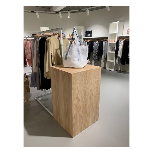 Wij vervaardigen de sokkels uit Europees eiken fineer, type Dosse. In deze fineersoort zit een mooie tekening / vlam, die kenmerkend is voor het uiterlijk van eiken. De zuilen worden in verstek vervaardigd. Dankzij de zorgvuldige afwerking zijn er nagenoeg geen lijnen op de hoeken zichtbaar.