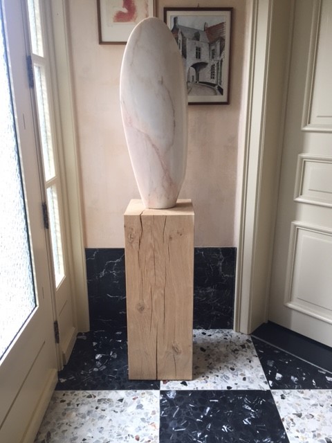 De eiken sokkel wordt met een schuurmachine geschuurd tot korrel 120. De sokkel wordt daarna niet behandeld met een olie, beits of laklaag.
