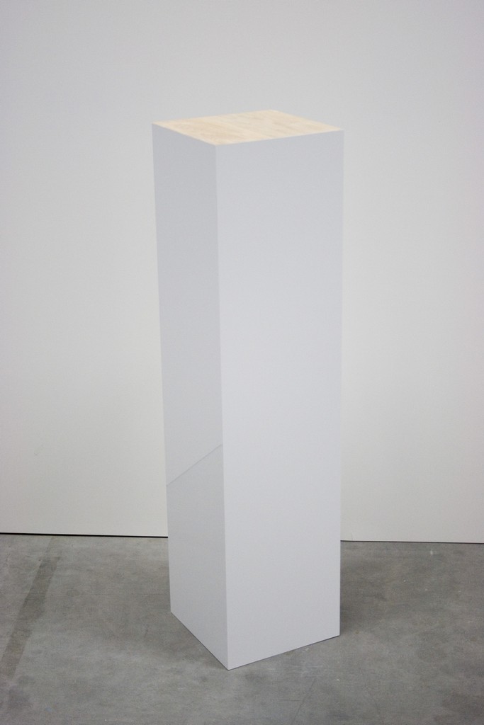 Stijlvol: hoogglans sokkel met binnenvallende eiken top. We combineren graag verschillende materialen.