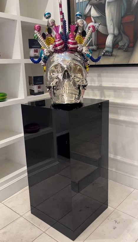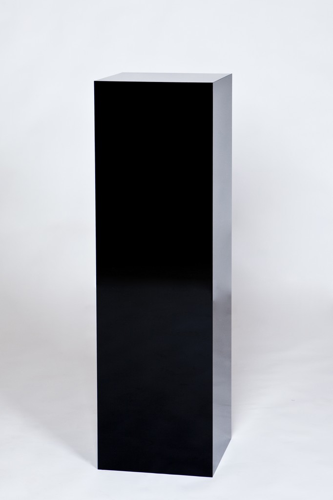 De hoogglans zwarte sokkel en een sokkel met een zwart matte afwerking. Beiden zijn gemaakt van plaatmateriaal met een zwarte kunststof laag.